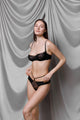 Discover our black panties, a seductive piece that exudes elegance and sensuality. With exquisite crochet-like embroidery and sheer mesh material, this thong adds a subtle touch of boldness to your lingerie collection.