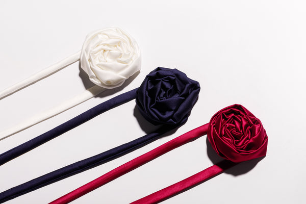 Discover our navy blue flower choker, a delicate and charming accessory that will add an elegant and bohemian touch to any outfit. This choker is decorated with silk roses in a deep shade of navy blue, giving it a captivating and romantic look.