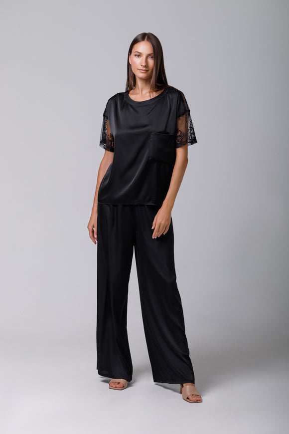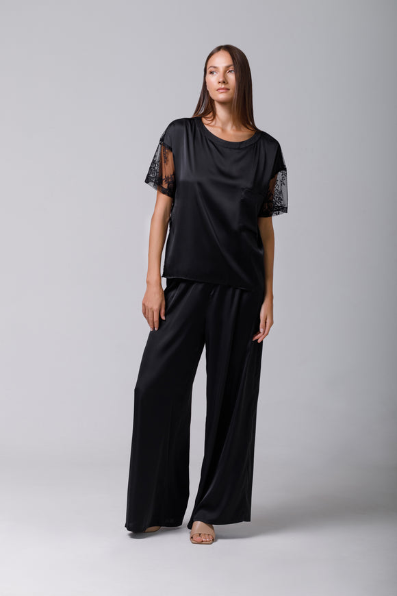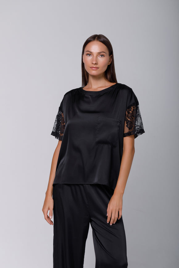 Black satin t-shirt with lace