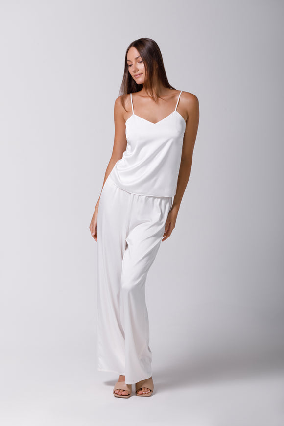 Palazzo pants in ivory satin