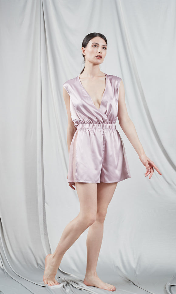 Pale pink silk jumpsuit with lace