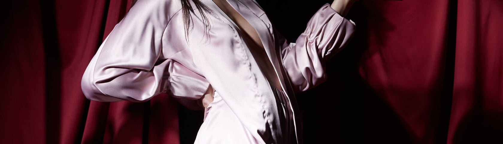 Long pale pink satin kimono
