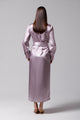 Our long kimono is the epitome of sophistication, featuring a classic layered silhouette and crossed lapels for a timeless look. The robe is cut to drape gracefully over the body, with a slightly flared shape and side slits, offering comfort and style.