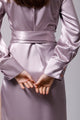 For a perfect fit, the kimono features a waist belt so you can adjust it to your preference. Whether you're lounging at home or getting ready for bed, our silk satin robe will envelop you in luxury and elegance. Experience ultimate comfort and elegance with our essential nightwear collection. Enhance your sleepwear wardrobe with these beautifully crafted pieces that will be a pleasure to wear day and night.